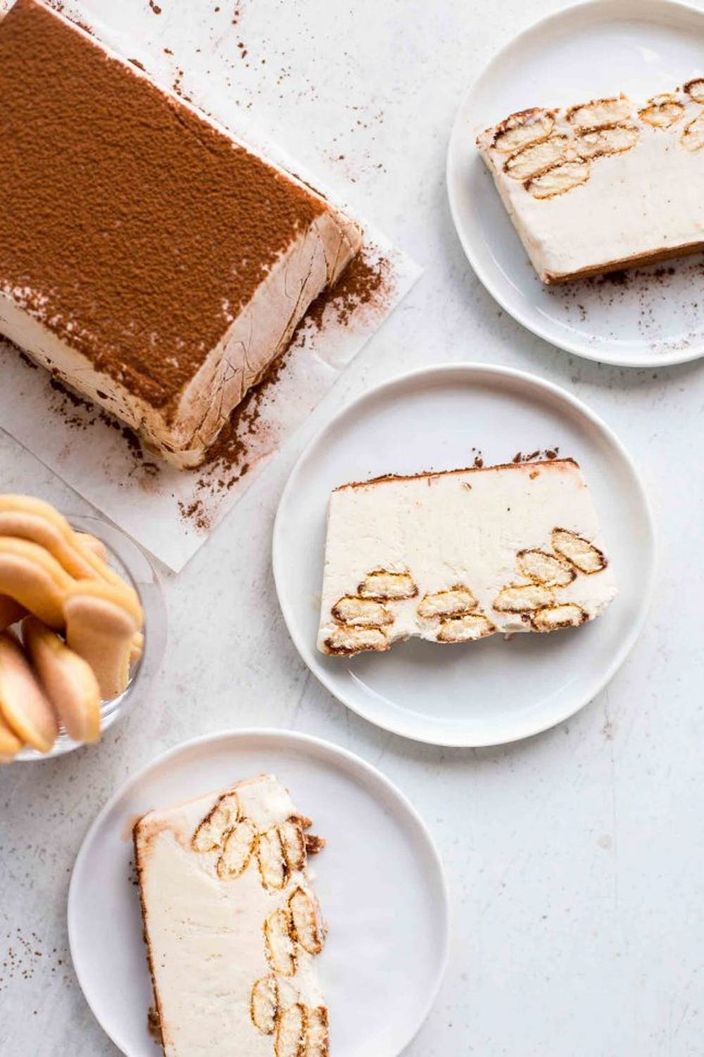 Top with onethird of the icecream mixture Continue layering with the soaked biscuits and icecream mixture, finishing with a layer of the icecream mixture Cover and freeze for at least 6 hours or overnight Place the cream, mascarpone and vanilla in a bowl and using an electric mixer or whisk to whisk until soft peaks formTo remove the tiramisu ice cream cake, wipe the mould with a kitchen towel and invert the ice cream cake on a plate Remove the cling film and put the ice cream cake in the freezer Step 8 – Decorate the Tiramisu Ice Cream Cake Whip the heavy cream with the 30 gr sugar (1 oz) until stiff peaks formsSep 22, 16 · The Tiramisu Ice Cream Cake recipe out of our category Menu!
